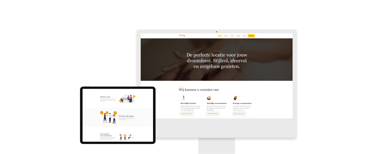 Een moderne en professionele website die Melody Events helpt hun bedrijf online te presenteren en tegelijkertijd het beheer van hun content eenvoudig maakt.